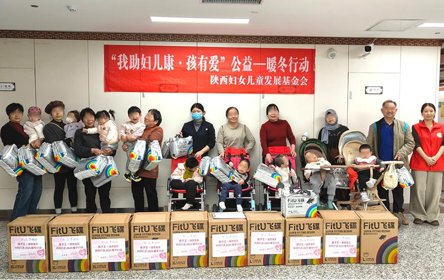 1月14日,西安中医脑病医院联合江苏省妇女儿童福利基金会、陕西妇女儿童发展基金会、孩子王儿童用品股份有限公司共同开展“我助妇儿康・孩有爱”公益——暖冬行动,为40名特殊儿童家庭送上生活物资,切实保障特殊儿童的卫生健康。