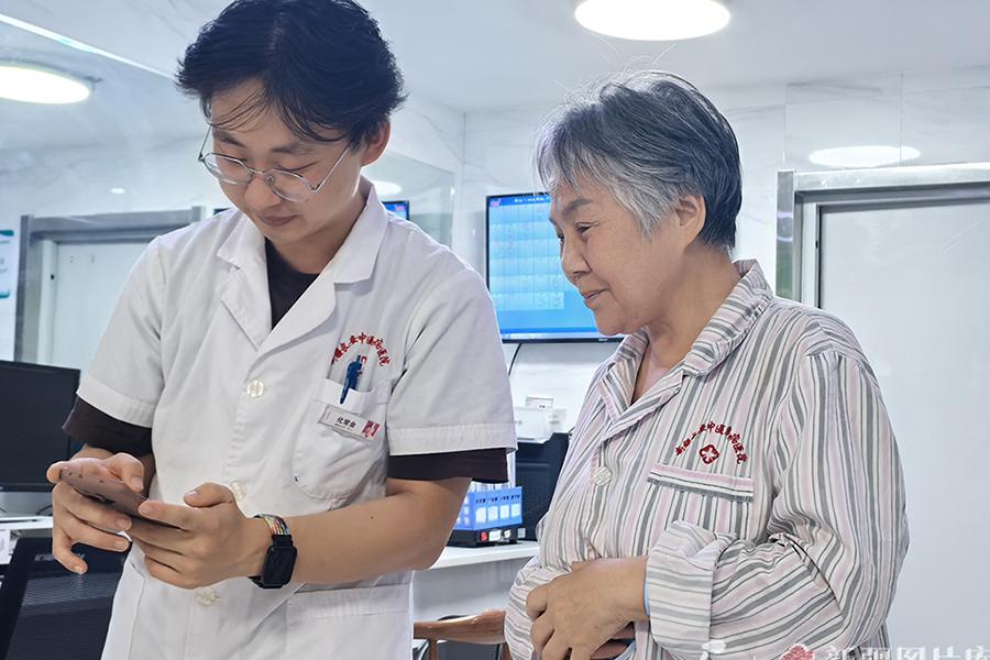 7月8日,化常金正在为患者讲解如何使用医院小程序查看检查报告。天山网-新疆日报记者 马蓓 摄