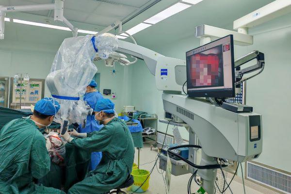 显微镜下定位病灶、准确切除……7月17日,杨兴奎带领团队严谨细致、有条不紊地进行着每一个环节的操作,在全麻下为李刚实施了切除手术,历经3个多小时,手术顺利完成。